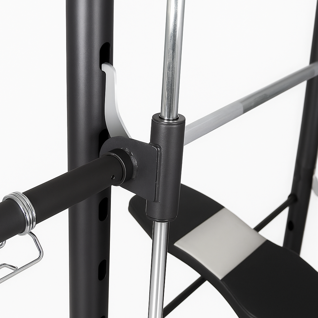 Bar System: Counterbalanced smith bar (starting weight 9 kg) with multi-height racking